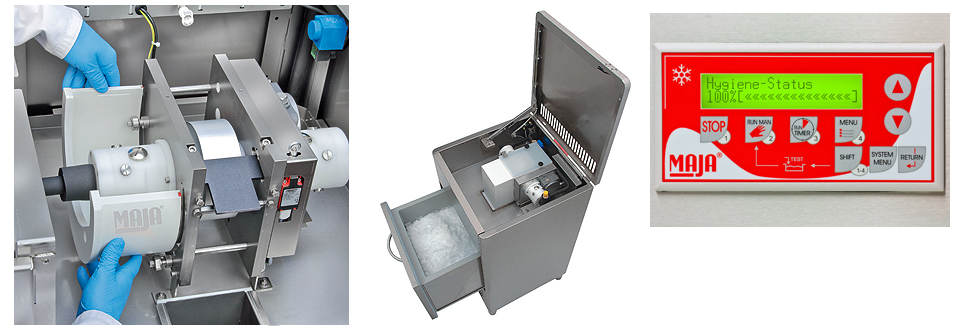 Het principe van de scherfijsmachines is door Maja ontwikkeld en geperfectioneerd en is ruim 40 jaar in de praktijk beproefd. Het is een eenvoudig, goedkoop en uitermate onderhoudsarm procédé. De in een waterbad roterende, diepgevroren metalen cilinder levert gegarandeerd een constante ijskwaliteit. Bij elke omwenteling vriest water tegen de wals vast om daarna als vriesdroge ijsscherven te worden afgevoerd.